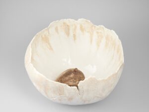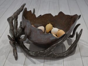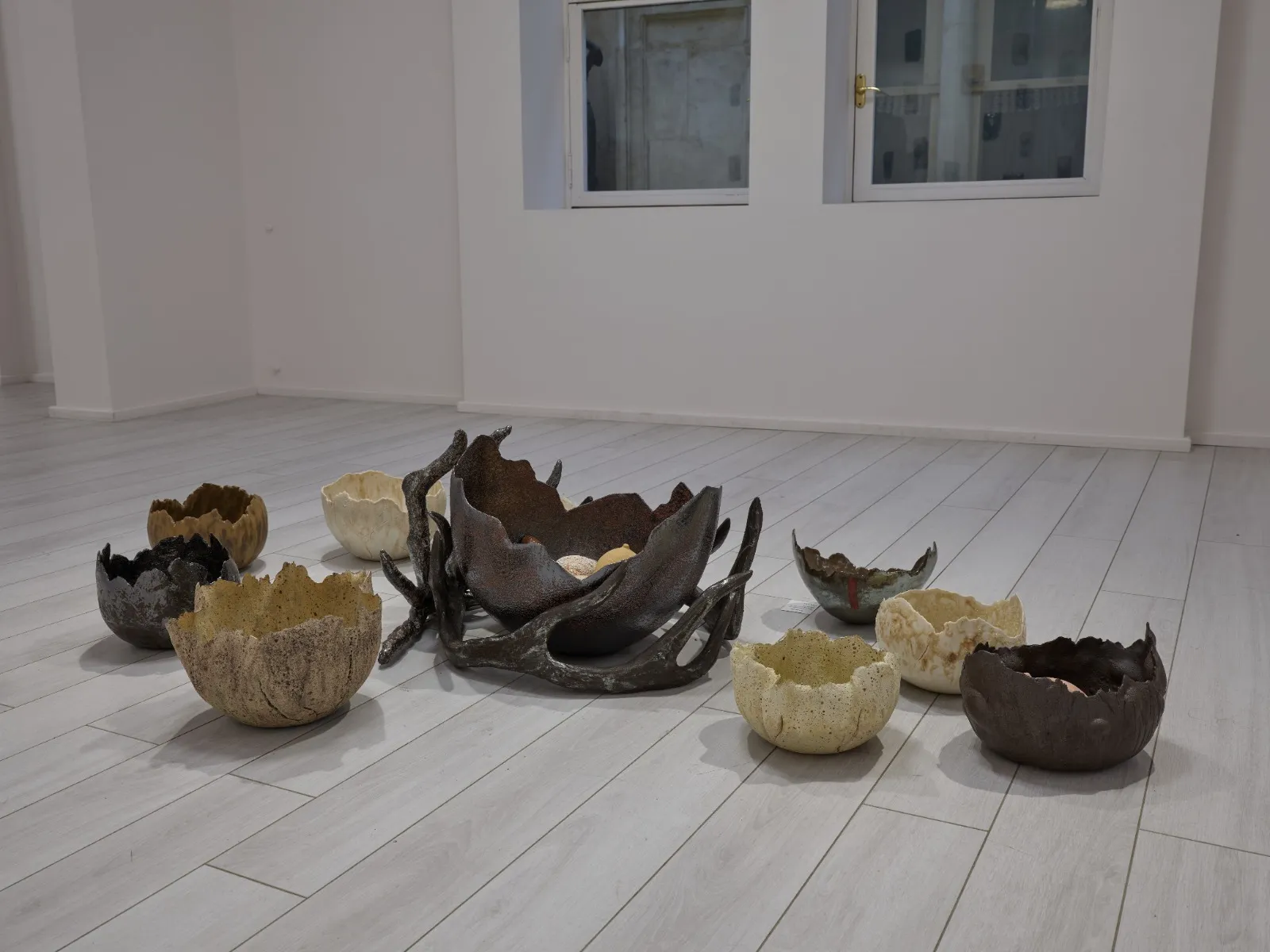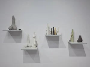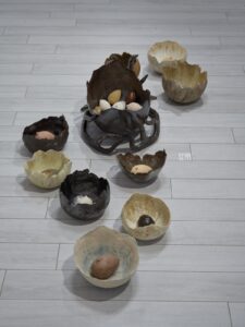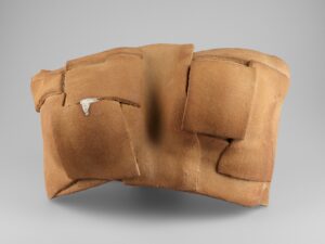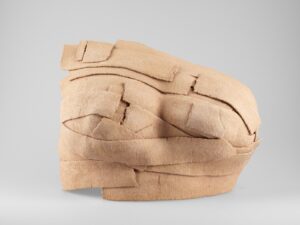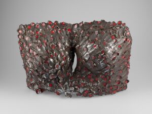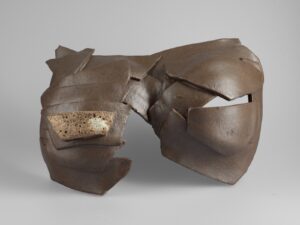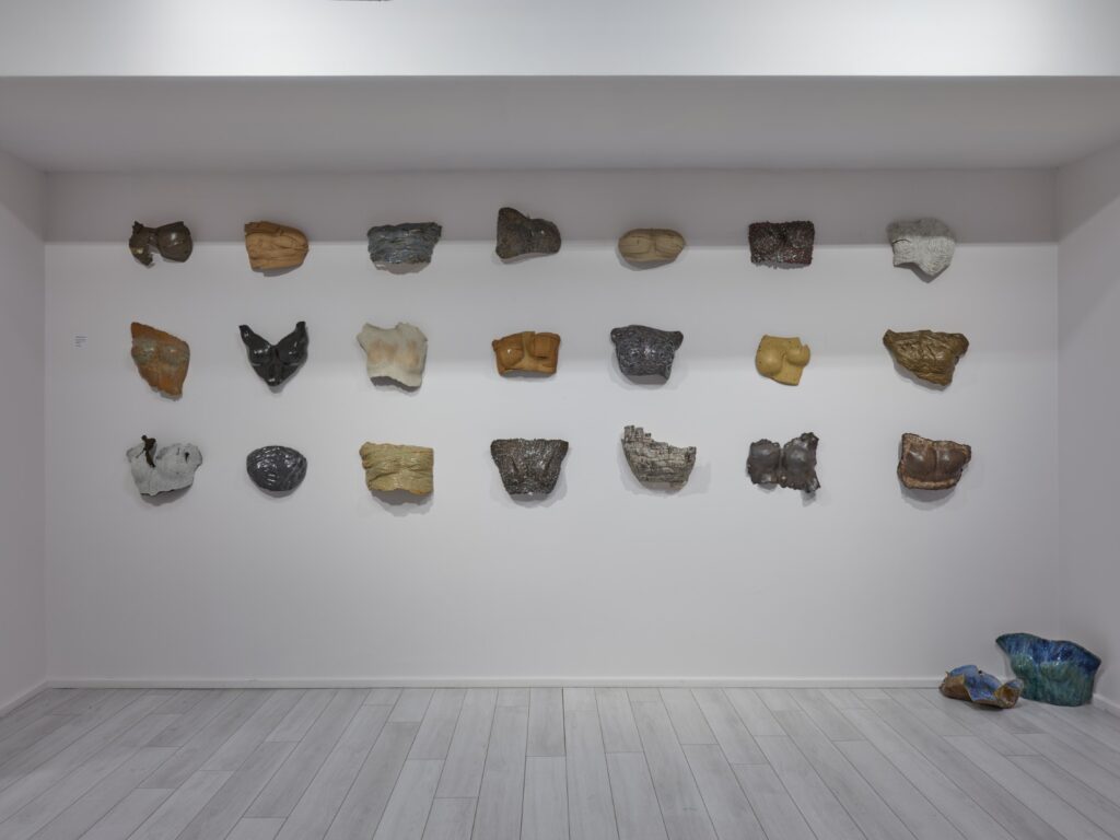 Tarihi yazan erkeklik, sadece erkek bedenini koruyan zırhlar üretmiştir. Kadınları, diğer objeler gibi bir savaş ganimeti saydığından onları koruyacak bir araca lüzum görmemiştir. Tam da bu sebeple, “Kadınlık Zırhları” asker gibi dizilip militarizme gönderme yapar. Her biri farklı toprak çeşidi, form ve renge sahip bu eserler; insanın biricikliğine vurgu yapar. Bazıları toprağa karışan; bazıları farklı toprakları aşan kadınlardan ilham alan bu zırhlar, göç yollarında birer kabuk gibi geride bırakılmıştır.